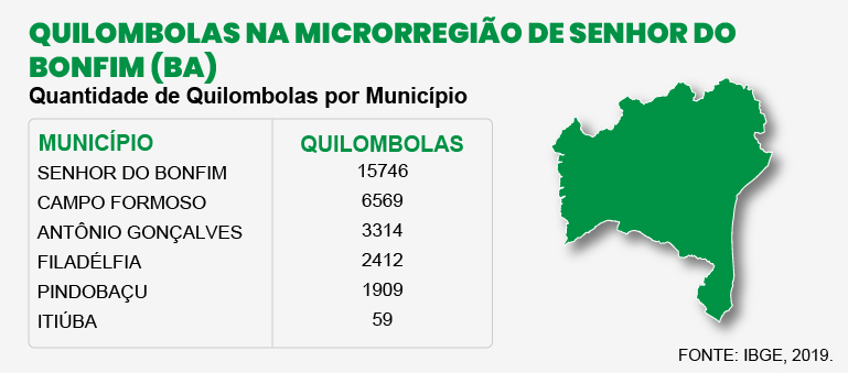 No município de Senhor do Bonfim, a 387 quilômetros de Salvador, 77% dos membros remanescentes de quilombos estão vacinados com a primeira dose da vacina contra a Covid-19. Desde o início da pandemia até a segunda semana de junho, foram registrados mais de 4,4 mil casos de infecção pelo vírus na cidade, com 74 óbitos.