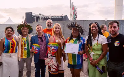 "Hoje eu tô aqui para agradecer o Ministério das Comunicações, pelo por esse espaço importante que a gente tá inaugurando para acesso digital da comunidade LGBTQIA+. Nesse mês que é o mês do orgulho LGBT, então que esse trabalho possa ser ampliado e que a comunidade LGBT possa se beneficiar do nosso espaço"
